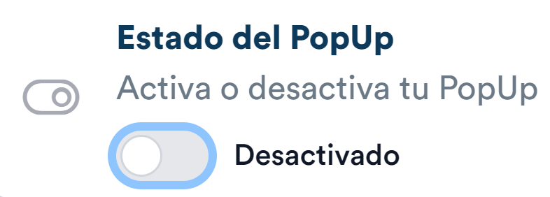 ⚪ Desactivado: el Pop-Up no aparecerá en tu tienda, y tus clientes no podrán visualizar su saldo de puntos ni acceder a sus recompensas desde el sitio.
