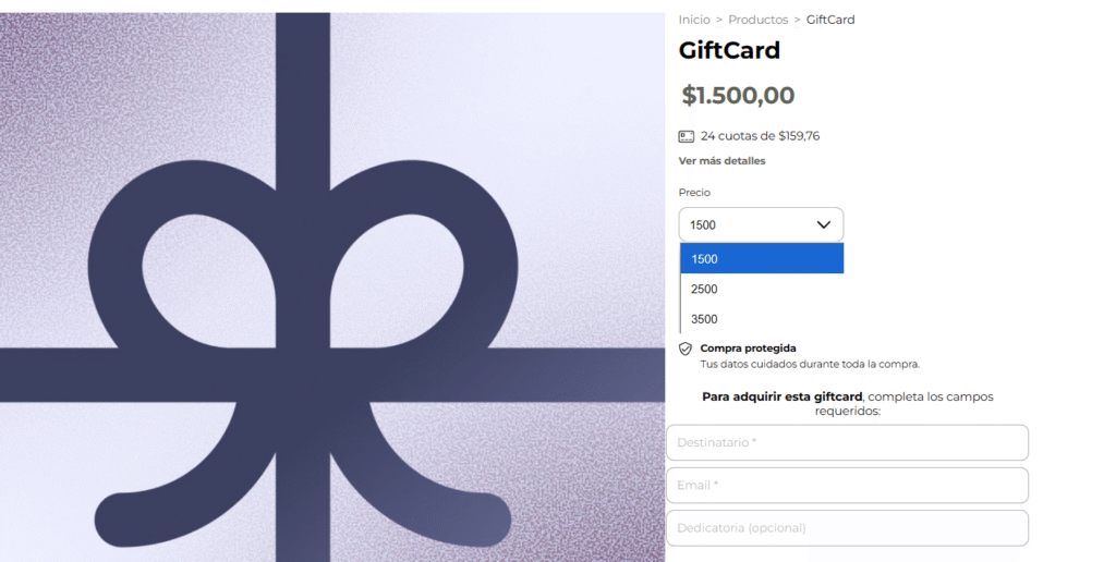 🟢 Listo: tu GiftCard ahora aparece como un producto dentro de tu tienda online, lista para ser comprada.