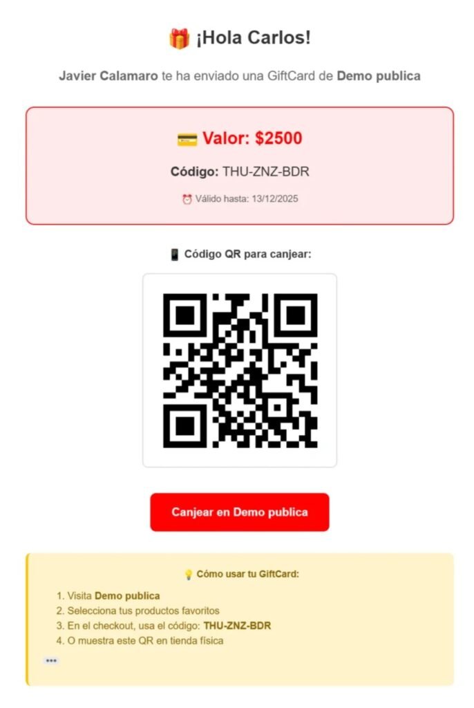 - ✔️ La GiftCard no requiere envío.